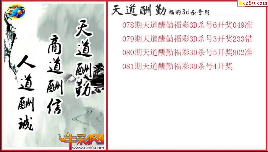 > 26年081期3d 天道酬勤杀号图