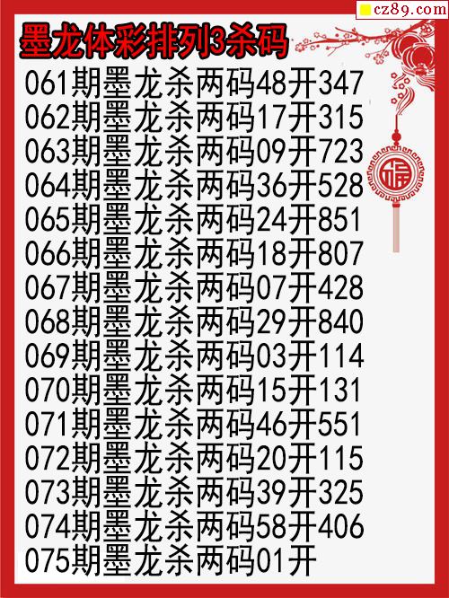 26年075期墨龙体彩排列3杀码图